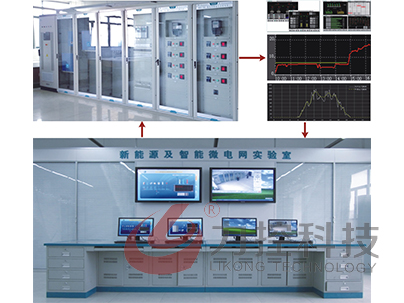 本系統(tǒng)由五個(gè)典型部分組成,分別儲能系統(tǒng)、供配電系統(tǒng)、監(jiān)控調(diào)度系統(tǒng)、環(huán)境監(jiān)控云服務(wù)系統(tǒng)、負(fù)載系統(tǒng)、及發(fā)電系統(tǒng),其中發(fā)電部分有風(fēng)力發(fā)電和太陽能發(fā)電及氫能源組成。微網(wǎng)系統(tǒng)具備:發(fā)電部分(分布式電源)、RLC可編程負(fù)載、智能開關(guān)柜單元、后臺監(jiān)控調(diào)度系統(tǒng)。